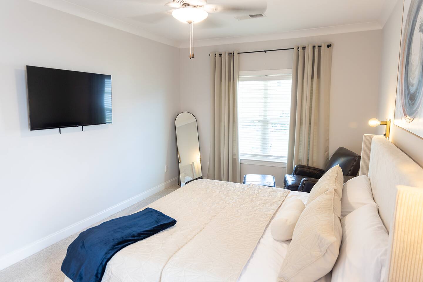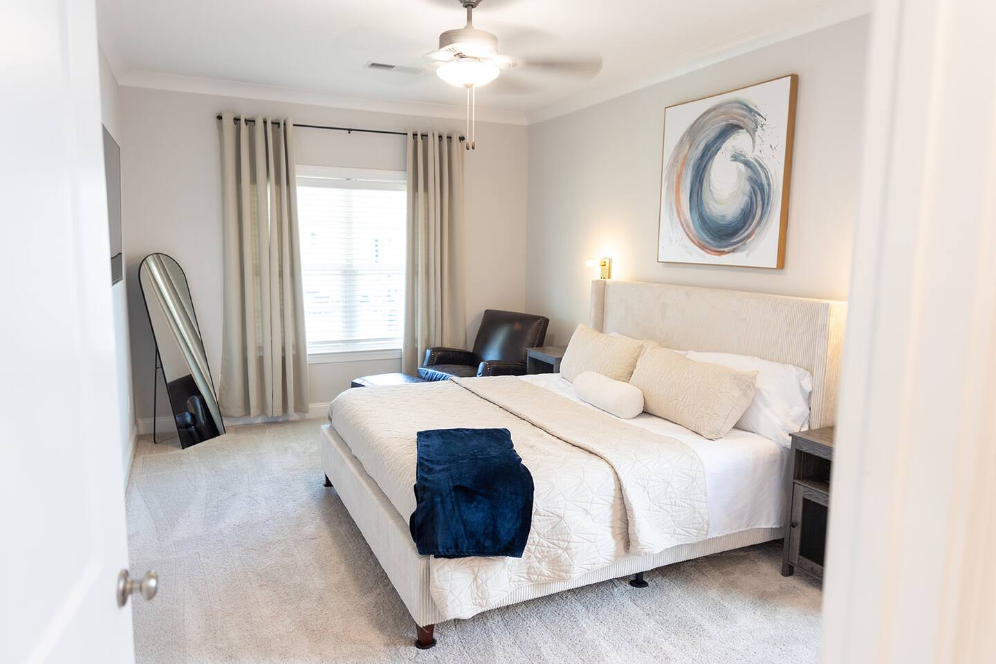 What You’ll Love: - Accessible Layout: Two bedrooms and bathrooms are located downstairs, making this home easily accessible for all guests. - Spacious & Comfortable: Sleeps up to eight guests with three well-appointed bedrooms featuring premium linens and en-suite bathrooms. - Prime Location: Minutes from Auburn University and Opelika, close to the action yet tucked away in a peaceful neighborhood. - Modern Amenities: Fully equipped kitchen, large smart TV, fast Wi-Fi, and in-home laundry for your convenience. - Community Perks: Enjoy access to a pool, gym, and a garage for easy parking. - Kid-Friendly Features: Pack and Play, high chair, step stool, toys, potty training toilet, and other essentials make traveling with little ones a breeze. The Space: Our townhome is perfect for families, couples, or groups. The open living area provides a welcoming space to gather, while the fully equipped kitchen ensures effortless meal prep. With two bedrooms downstairs and another upstairs, you’ll find privacy and comfort for everyone. Prime for all Auburn University Fans - Football, Basketball, Baseball & Beyond Located just minutes from Jordan Hare Stadium and Auburn Arena, our home is an ideal spot for Auburn Tiger fans. Whether you're here for game day, a college tour, a family visit, or a peaceful retreat, you’ll love the convenience and comfort our townhome offers. What Guests Are Saying: ⭐️ "We had a absolute great stay at Erika's place! We booked it for a small family trip to the area and anyone with small kids knows that there is nothing more stressful than kids playing in someone else's home. Erika's place was kid-friendly / smart decorations (no breakable objects just laying around), had some toys already there, a pack-n-play, etc. Overall we were so comfortable, felt right at home, and will be back!" ⭐️ “Super spacious, clean, and comfortable. Erika was a fantastic host—so responsive and helpful!” ⭐️ “Perfect for our golf trip! The house was pristine and had everything we needed.” ⭐️ “Very clean and new with a quiet neighborhood. Erika’s thoughtful extras made us feel right at home!” ⭐️ “Safe and comfortable for my family. Erika’s place is a gem!” ⭐️ “Amazing location for game days with teenagers—safe, convenient, and peaceful!” Book your stay now and experience the perfect combination of a prime location, welcoming amenities, and thoughtful touches that keep our guests coming back year after year!